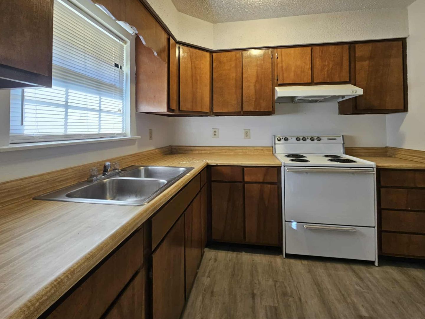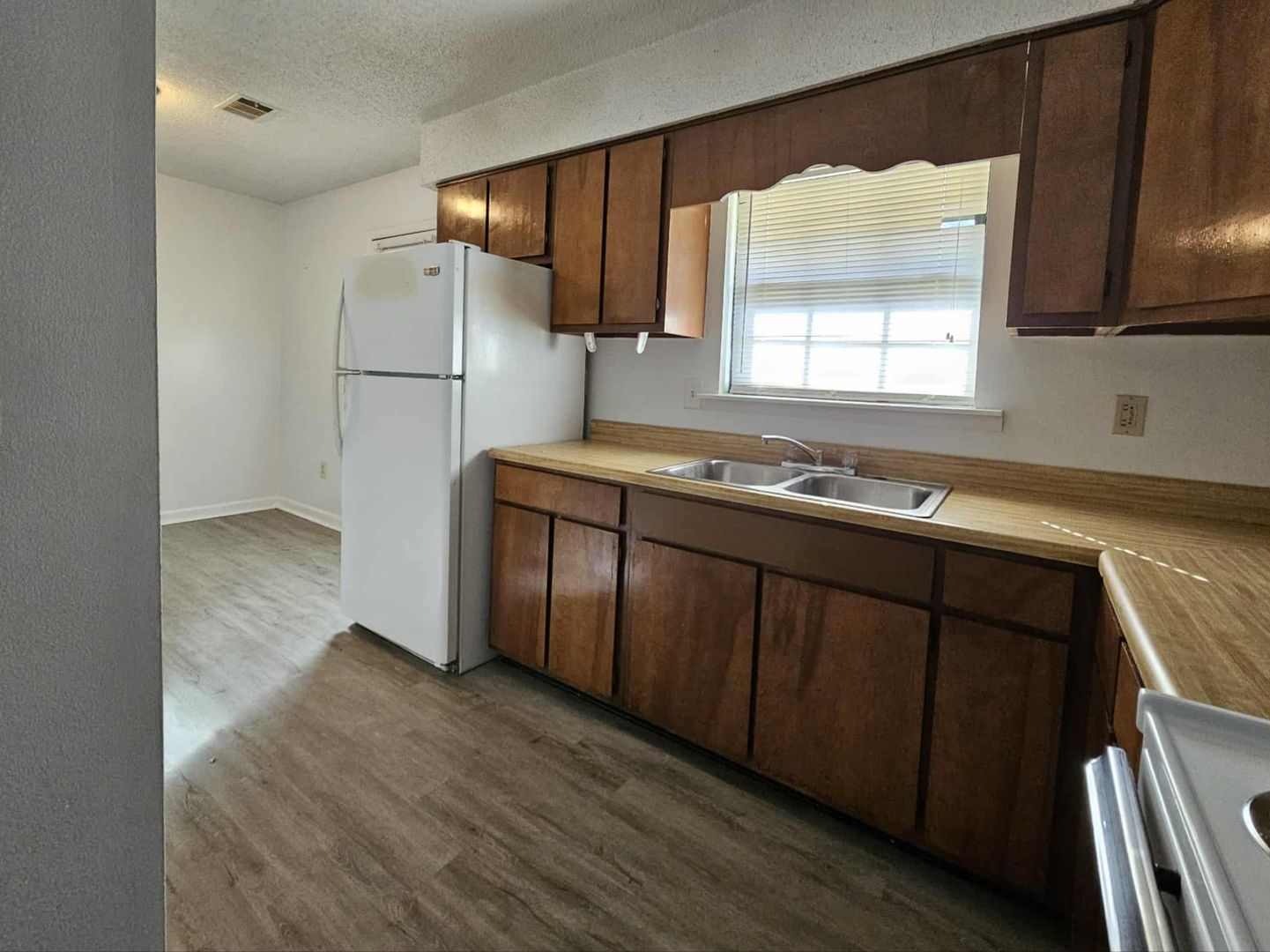 1 bedroom, 1 bathroom apartment with front porch and laundry hookups in bathroom. Located in the West Jackson Villas. Refrigerator and oven/stove included. 1 parking spot is available, lawn care and pest control are included.