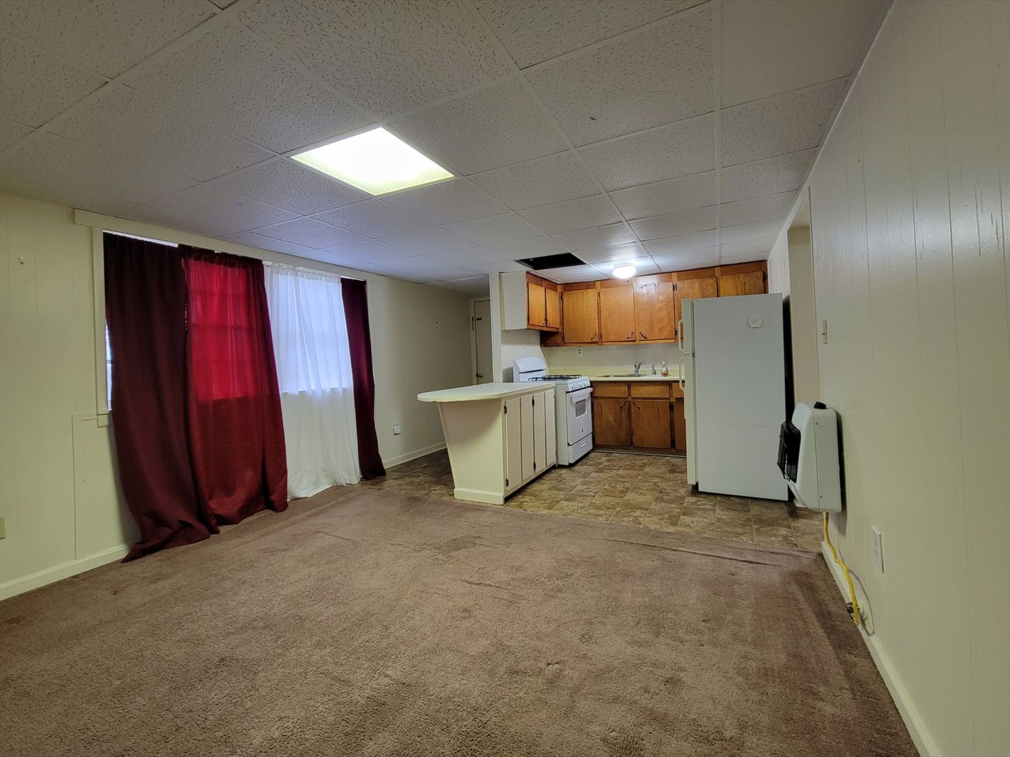 1 bedroom, 1 bathroom apartment with kitchen. Includes refrigerator and stove/oven. Home has wall heaters and a window unit instead of central heat/air. All utilities and lawn care are included with rent. No laundry hookups.