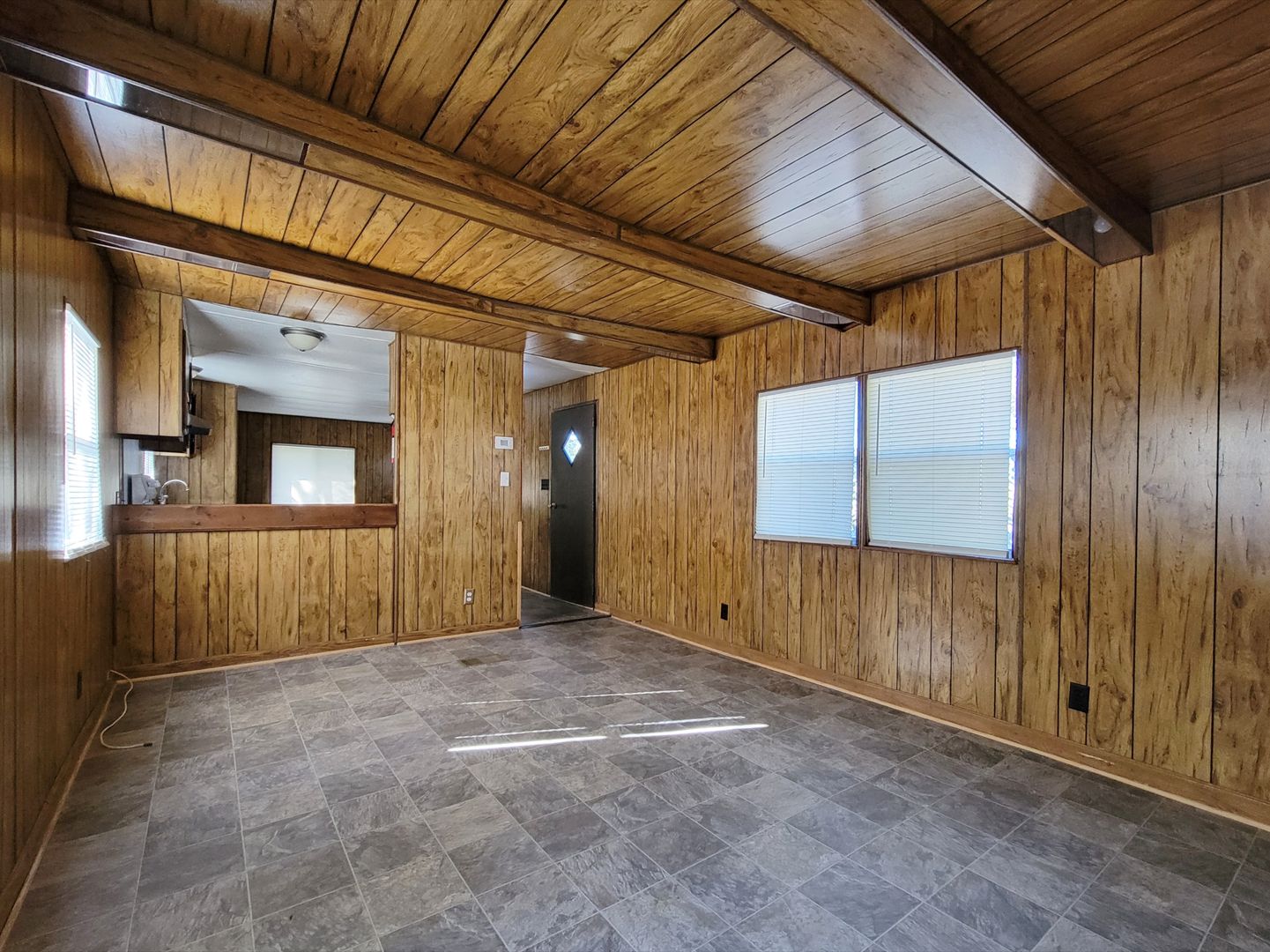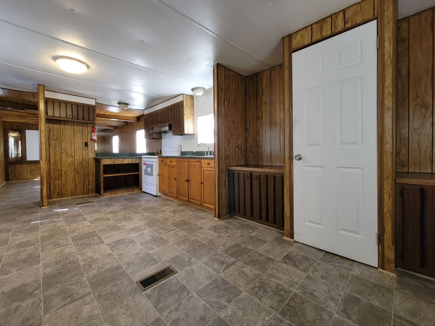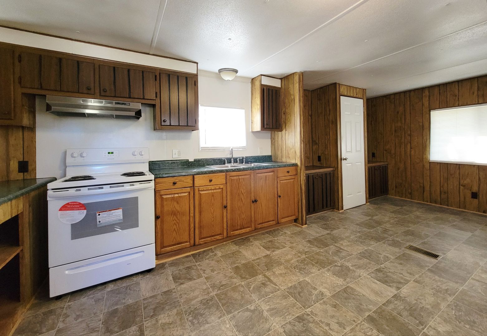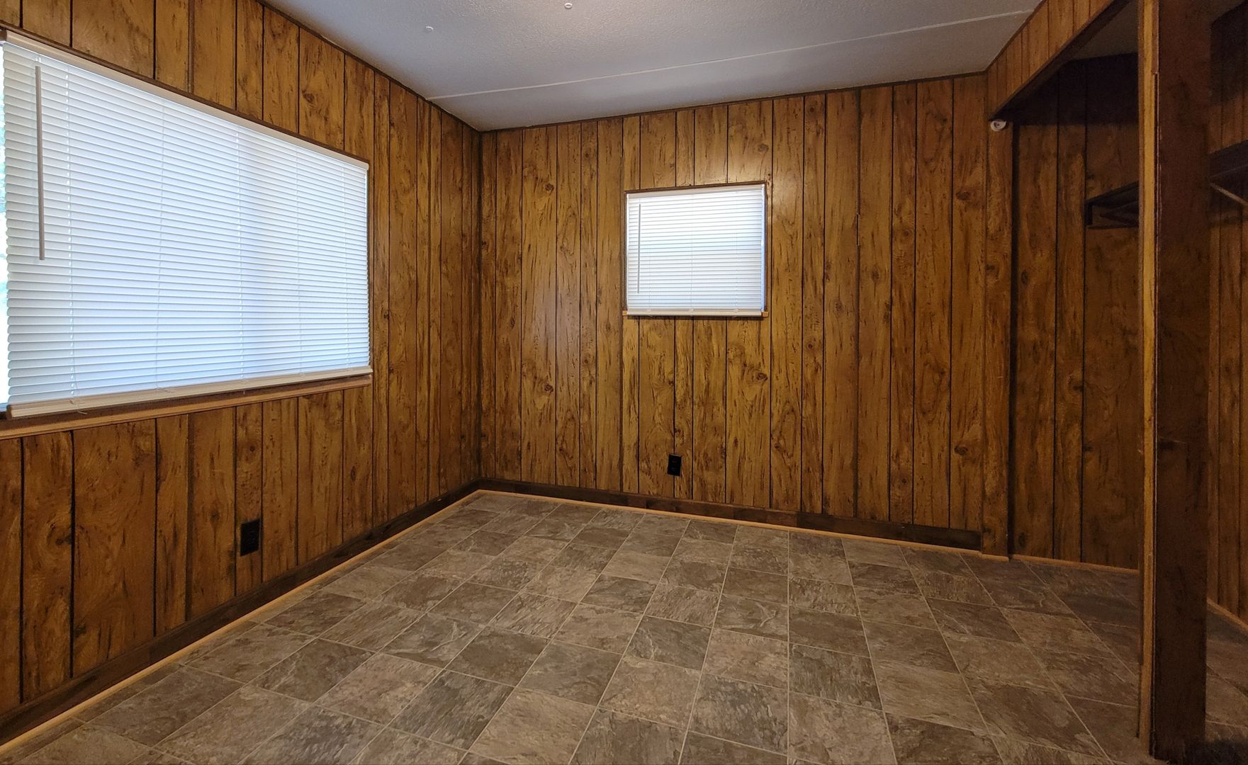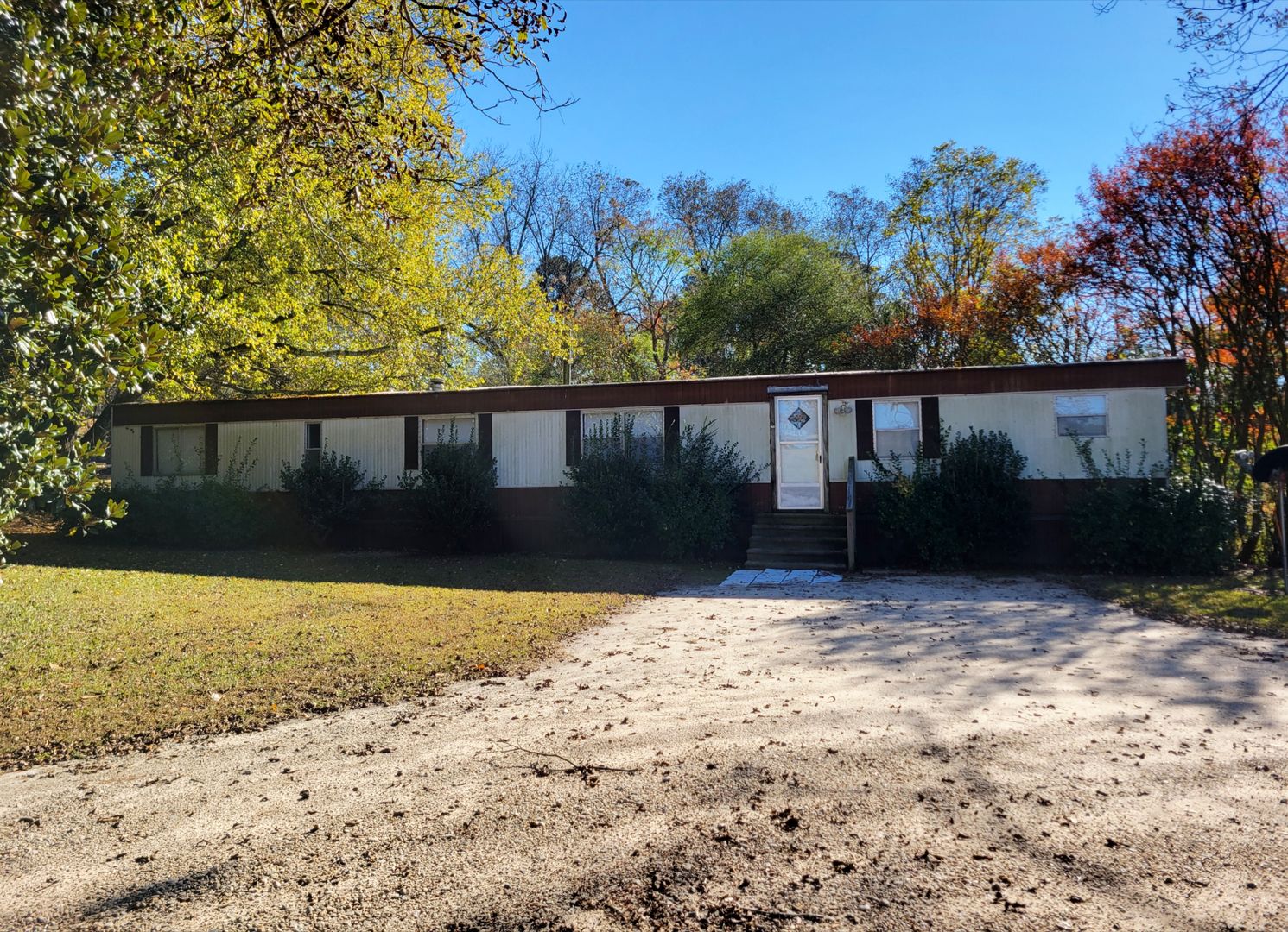 2 bedroom (one without closet), 1 bathroom mobile home. Lawncare, water and pest control are included. Power is tenant responsibility. Laundry hookups and stove included, refrigerator not included. No pets.